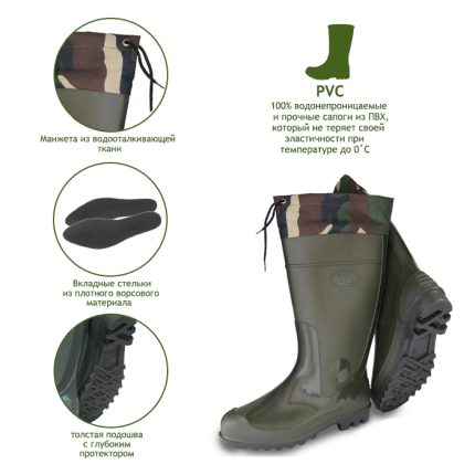 Легкие и утепленные мужские сапоги из ЭВА с манжетой против попадания влаги и мелкого мусора. Сапоги укомплектованы утеплителем. Размерный ряд от 42 до 46
