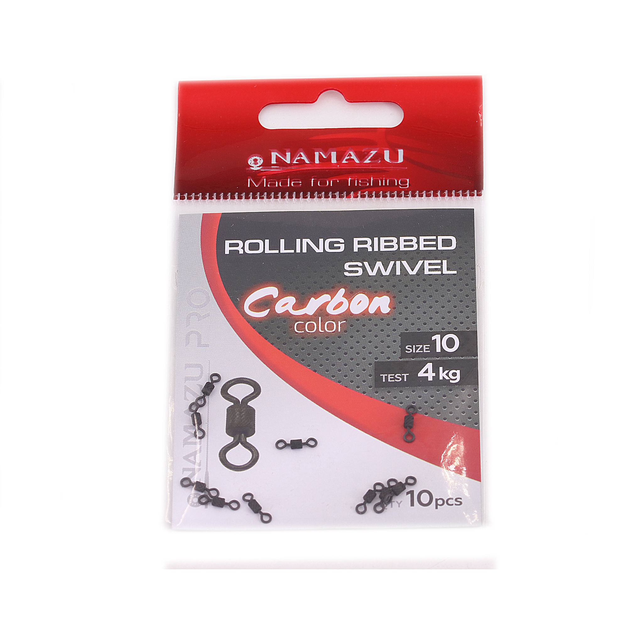 Вертлюг Namazu Pro ROLLING RIBBED SWIVEL, латунь, цв. Carbon, р. 10, test-4 кг (уп. 10 шт.)/2000/
